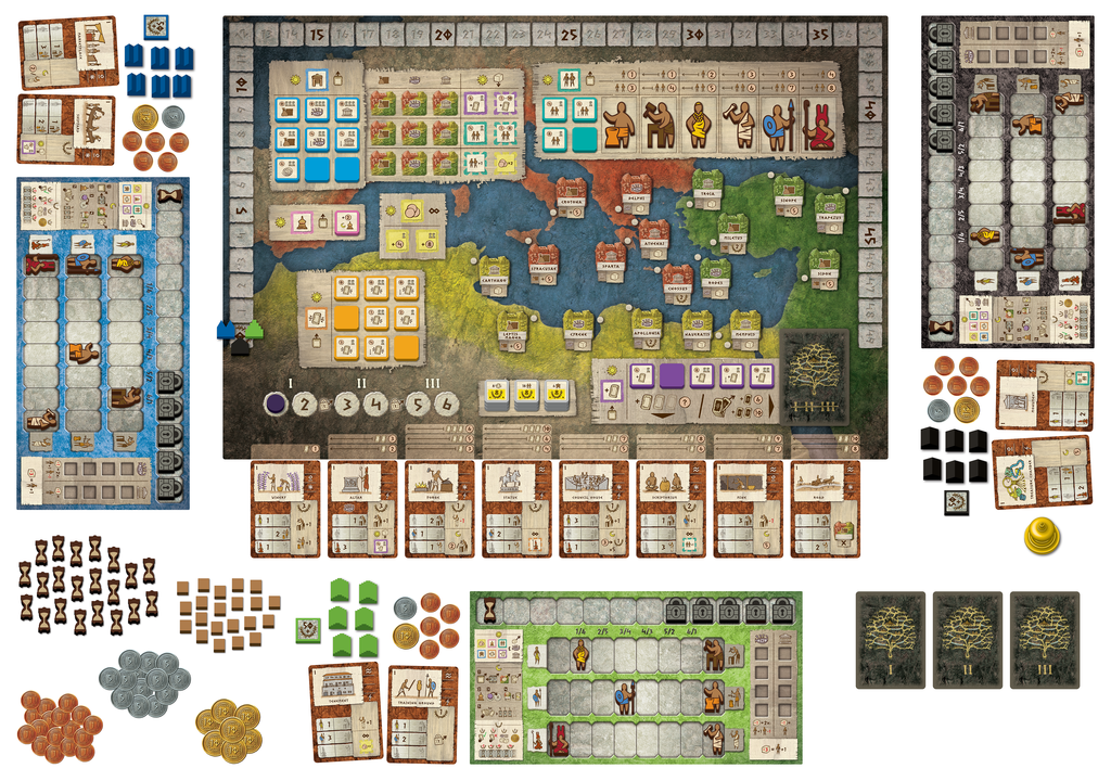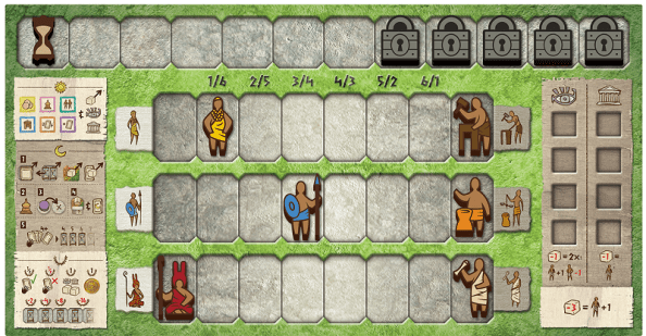 Автор игры – Stefan Risthaus, отметившийся хардкорным евро Arkwright с неплохим рейтингом в 7.9/10 (у Gentes сейчас 7.7). Меня же больше всего привлекла ключевая механика “времени”, когда каждым действием игроки заполняют персональные треки жетончиками песочных часов.