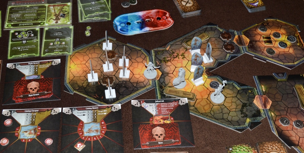 Несмотря на отсутствие кубиков, азарта тут выше крыши. Всё-таки карточки модификаторов могут серьёзно повлиять на результат. Особенно, когда противник засоряет геройские колоды проклятьями.