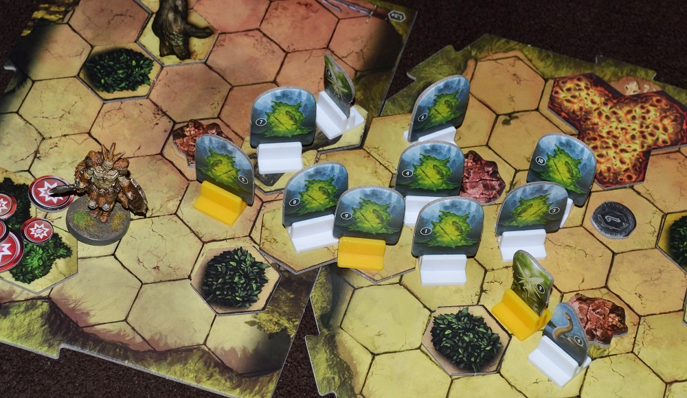 Так нам стал доступен ещё один сценарий, в котором пришлось расчищать сад этого самого знакомого от назойливых слизней. Но миссию мы благополучно провалили. Поспособствовало этому большая открытая карта с кучей монстров, постоянно появляющиеся слизни (согласно своей колоде и специальным правилам сценария) и лесные феи, накидавшие нам проклятий в стопки модификаторов.