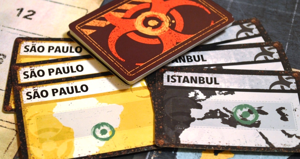 Если при вытягивании карты в городе не оказалось запасов, то он становится заражённым и помечается зелёным кубиком чумы. Ну, а ежели нужно положить четвёртый зелёный кубик, то случается вспышка – с соседних локаций скидывается по кубику запасов.