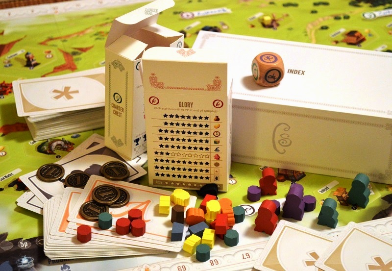 Charterstone. Много партий было сыграно в Чартерстоун. Мы-таки добили нашу с Катей кампанию на двоих с одной аутомой. В принципе, повторным прохождением я доволен, так как получилось всё иначе: новый цвет “чартеров” принёс новые здания и, следовательно, новые комбо на очки. Плюс у нас кардинально поменялся порядок выхода внедряемых миньонов и прочих новшеств. Более того, сама кампания завершилась другой концовкой.