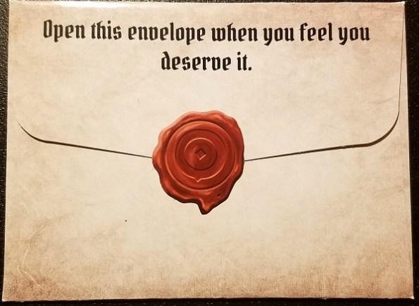 На конверте написано “Откройте, когда почувствуете, что вы этого достойны”. Разумеется, мы были достойны вскрыть его сразу же только потому, что наиграли уже 30+ партий. И вообще, мы выбрали “добрую” ветку и стараемся всем помогать!