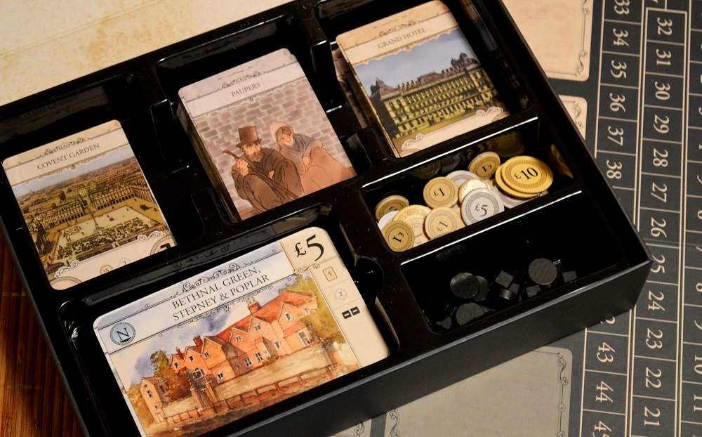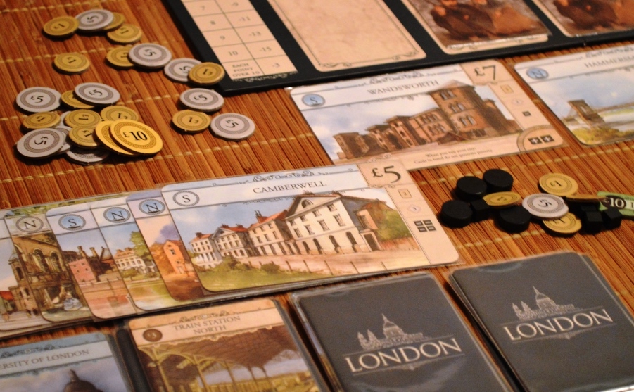 Ключевое изменение – отсутствие поля. Теперь районы или боро Лондона представляют собой большие карты (как в Диксите). Но самое главное, поменялся принцип их работы – новая карточка после покупки сразу же кладётся поверх старой, закрывая центральное свойство.