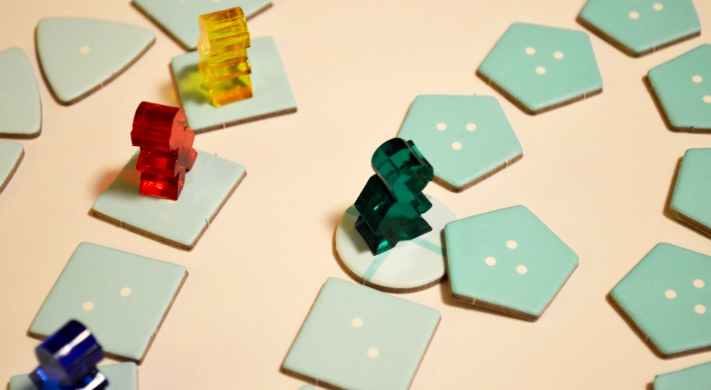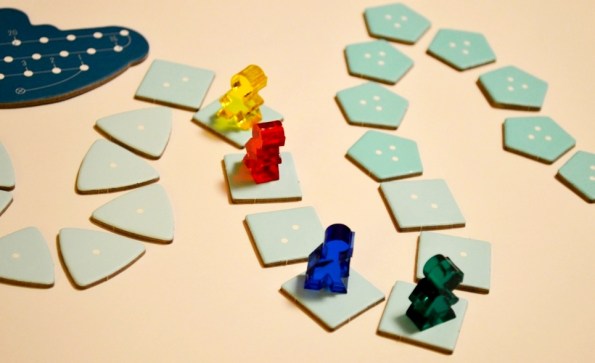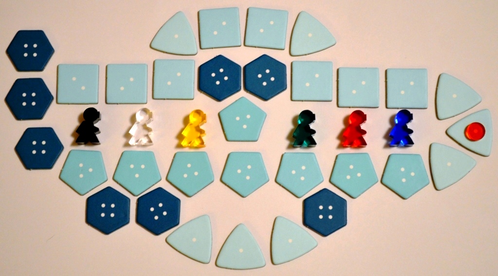 В принципе, всё. Нахапав жетонов, все судорожно начинают двигаться назад, молясь на высокие значения на кубиках и на соперников впереди, ведь через них можно прыгать.