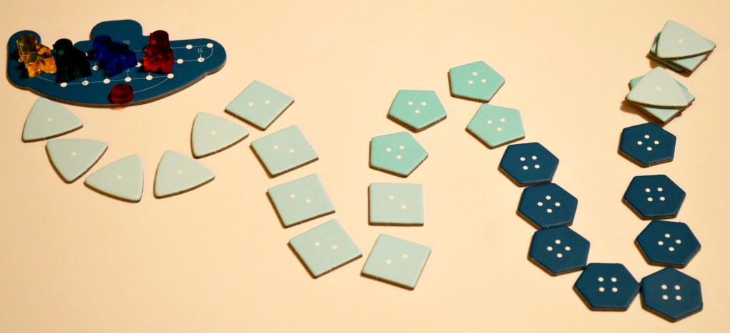 Парадокс в том, что всё вместе смотрится достаточно миленько, а после знакомства с темой игры, понимаешь, что подборка цвета не случайна – все жетончики представляют собой различные оттенки морских глубин.