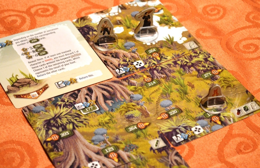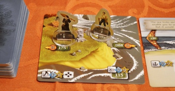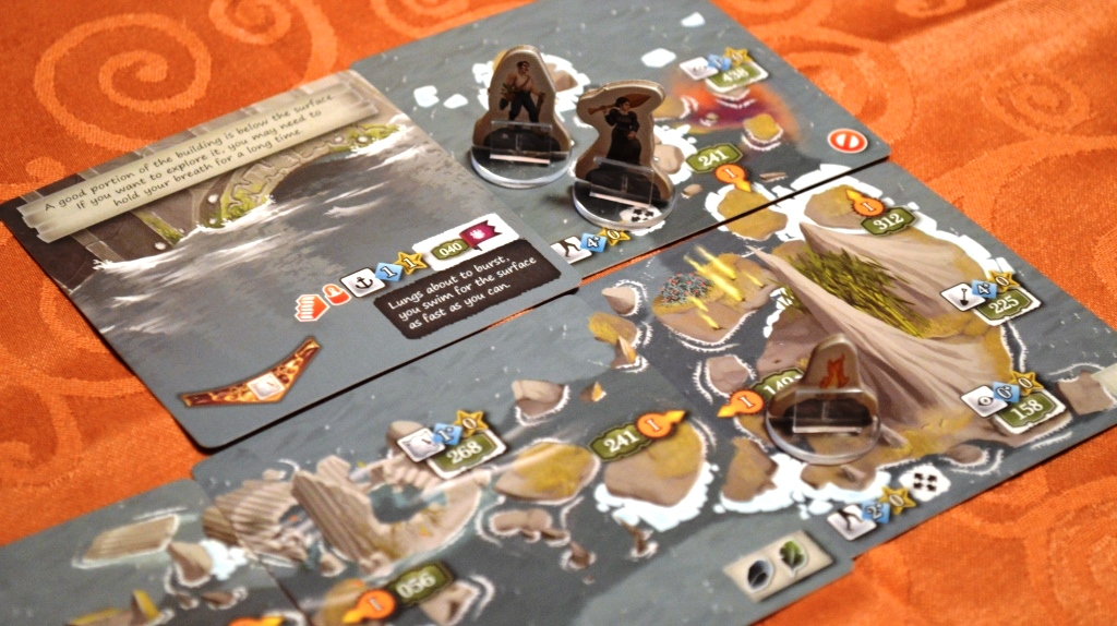 В общем, топтались мы долго, пока полностью не истощили колоду и не вытащили проклятье, что означало проигрыш. Короче говоря, в первый раз нам удалось лишь более или менее освоиться, вспомнить механики, некоторые нюансы и прикинуть, как нам лучше выбираться с острова и куда топать дальше.