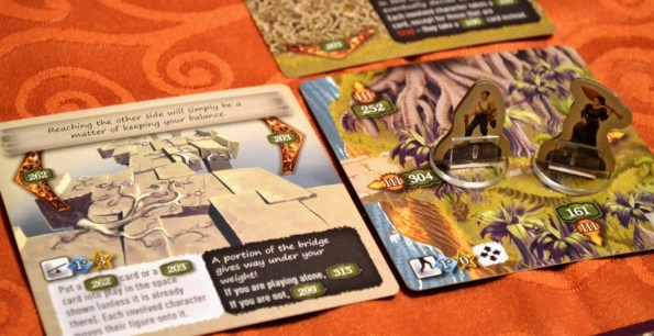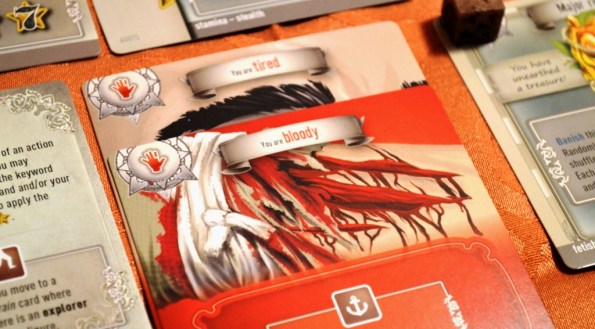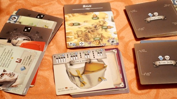 Зато сама система сохранения очень грамотная, для неё используется специальный набор карт-памяток: для сброса и колоды действий – одни, для обозначения долговечности предметов – другие. Всё остальное складывается одной стопкой: карточки персонажей со статусами; рюкзак с находками, накопленным опытом и подсказками; текущая локация, на которой остались герои.