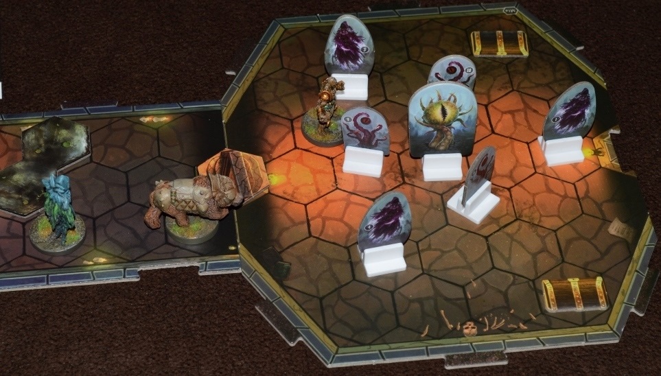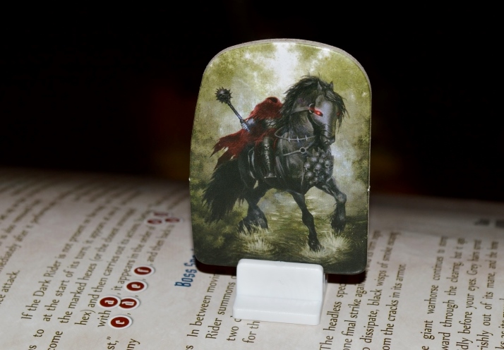 В чём прелесть Всадника? А в том, что он не просто тёмный, но и призрачный. В начале сценария на поле его нет, появляется он лишь в свой ход, и то ненадолго. Дело в том, что если ему удаётся провести melee атаку, то он тут же исчезает. Вот и получается, что игрокам нужно занимать такие позиции по отношению к местам респауна, чтобы Всадник не смог добраться до их героев. Ну, или надеяться на выход единственной карточки с дальней атакой.