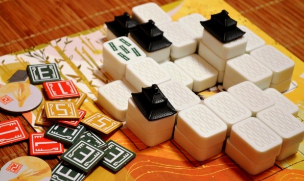 Драконы же предлагают новые условия, за выполнение которых в конце начисляются дополнительные очки. Теперь ПО можно заработать не только за переворот смежных костяшек одного цвета или высоту столбцов под крышами, но и, к примеру, за храмы, расположенные на границе планшета, или даже за фишки, лежащие лицом вверх. Отрадно, что и карт духов, и карт драконов в комплекте по 10 штук – какое-то время можно будет разнообразить партии.