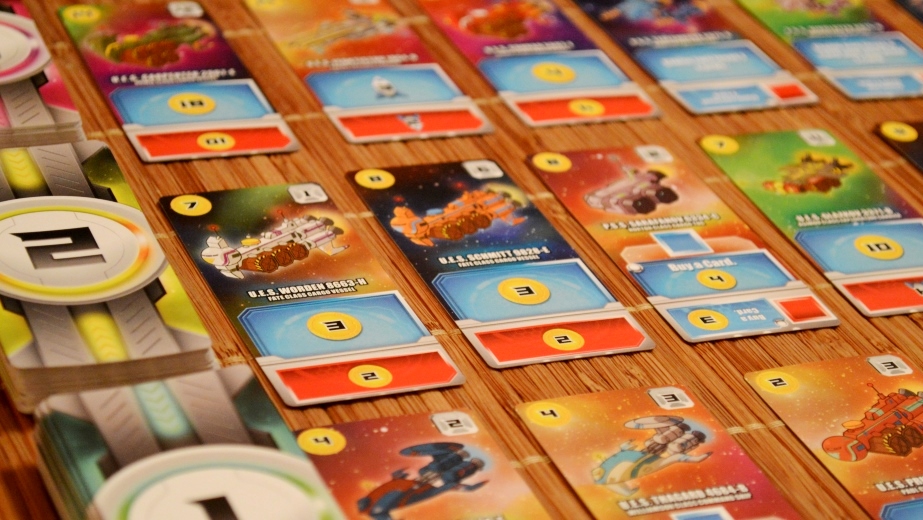 Space Base. Если в двух словах, то перед нами Мачи Коро, в которой: 1) больше выбора в свой ход (сразу 2 куба и 12 карточек, а выпавшие значения можно либо суммировать, либо применять по отдельности); 2) чаще что-то срабатывает в чужой (новые карты заменяют старые, причём, старые переворачиваются и подкладываются таким образом, чтобы виднелись свойства на красном фоне – их можно активировать тем, что накидали соперники); 3) можно плести интересные комбинации и минимизировать рандом за счёт свойств, позволяющих активировать соседние карты, перебрасывать кубы и т.д.