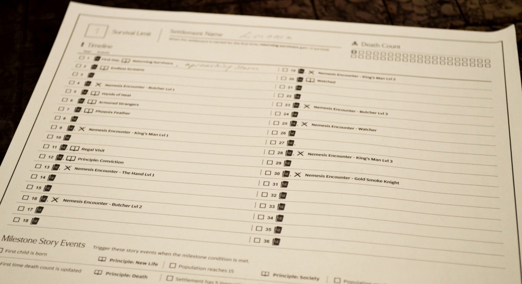 KDM показывает свой характер с первых событий, с первых бросков кубов. Ты быстро понимаешь, что любой персонаж может умереть в два счёта, и к нему не стоит привязываться. Ты искренне радуешься каждому высокому значению на десятиграннике и заранее готовишься к самым плачевным последствиям, когда видишь низкое.