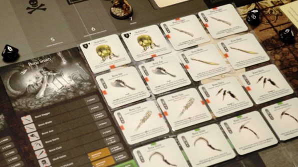 У оружия три параметра: скорость атаки – сколько десятигранников бросается; точность – выше какого значения должен быть бросок; и сила – повышает шанс нанести ранение.