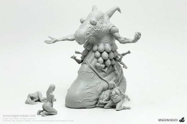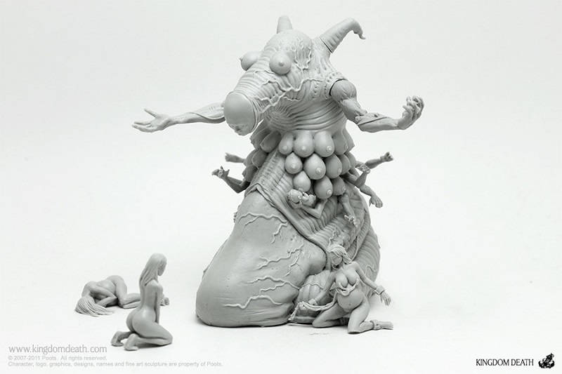 Что касается самих фигурок, то они впечатляют своей проработкой. И это неудивительно – насколько я понял, чтобы заработать некий стартовый капитал для запуска KDM, автор сперва занимался выпуском коллекционных миниатюр. Чтобы конкурировать в этой нише, нужна и соответствующая детализация, и какая-то изюминка. Впоследствии высокое качество миниатюр и противоречивый внешний вид перекочевали и в игру, а изюминкой стало внимание к деталям, странные пропорции, кишки и пинап.