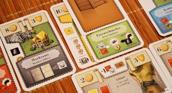 Свойства у них самые разные, к примеру: один даёт скидку на любой ресурс; второй активирует цепочку, даже если не производит товар; третий позволяет тянуть дополнительные карты. Из требований, в основном, сила и определённые товары – если не сбросишь указанную вещицу в конце игры, то очки за помощника не получишь.