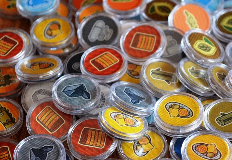 Altiplano. Тут просто хочу показать несколько фоток с жетонами, облачёнными в капсулы для монет, которые заказал на алиэкспрессе. Размер 20 мм, сидят, как влитые, запихивались с небольшим усилием. На коробку потребуется два комплекта по 100 штук.
