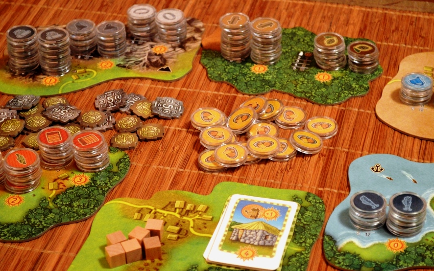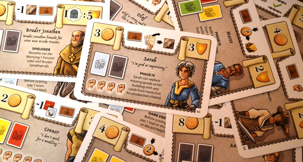 Свойства у них самые разные, к примеру: один даёт скидку на любой ресурс; второй активирует цепочку, даже если не производит товар; третий позволяет тянуть дополнительные карты. Из требований, в основном, сила и определённые товары – если не сбросишь указанную вещицу в конце игры, то очки за помощника не получишь.