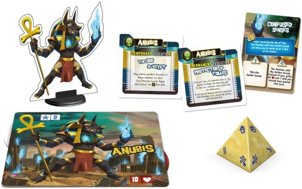 Оригинальность Anubis заключается в четырёхгранном кубике судьбы и 24 картах проклятий. На картах один постоянный эффект и два, которые активируются новым кубиком.