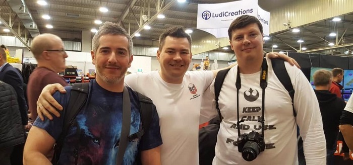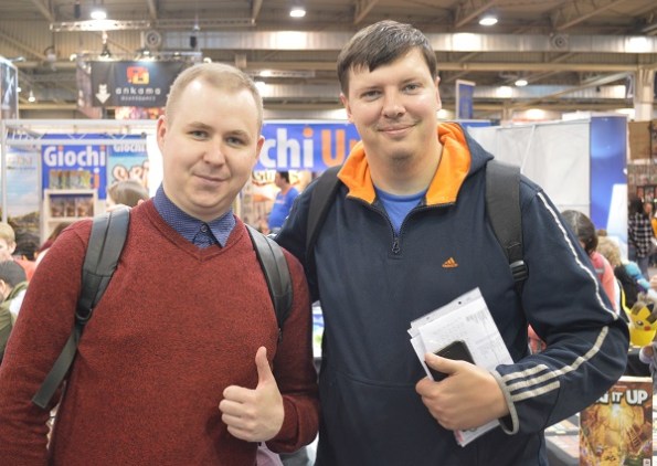 За что я ещё люблю Spiel, так это за возможность встретиться с теми, с кем знаком, по большей части, виртуально. В первый день мне удалось пообщаться с руководителем Cosmodrome Games Михаилом Пахомовым, директором производства Звезды Константином Комаровым, рулевым GaGa Games Антоном Сковородиным, генеральным директором Hobby World Михаилом Акуловым, Евгением Масловским из Crowd Games, Артёмом Глухих из GameBox Advanced и Сергеем ака Grey Wolf с канала I-Play-Solo . Жаль, сфоткаться получилось не со всеми.