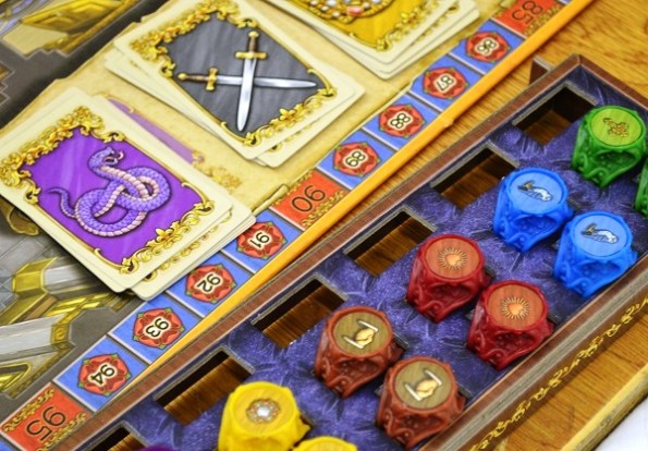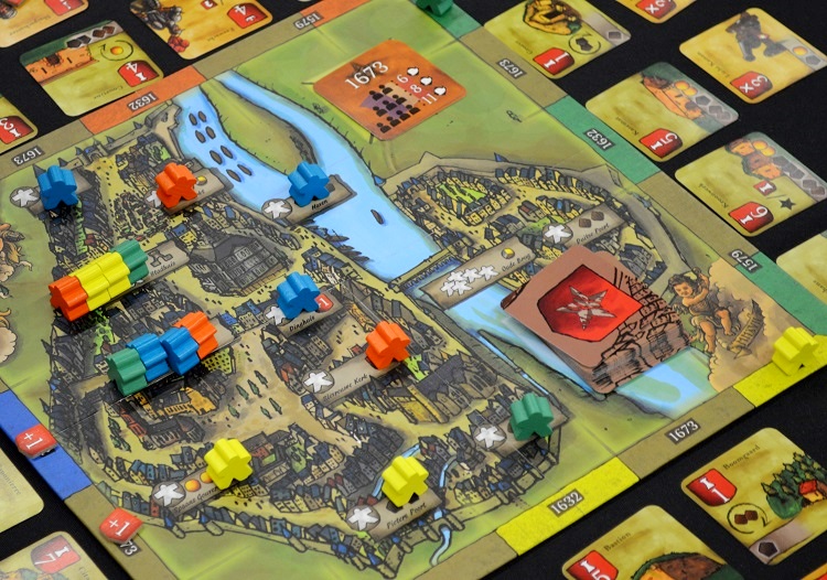 Нравится мрачность оформления, во всяком случае, оно отличается от привычной цветовой гаммы, в которую облачают все евроигры. Но вот чёрный цвет сыграл злую шутку с компонентами. И на картах, и на жетонах сразу же заметны потёртости.