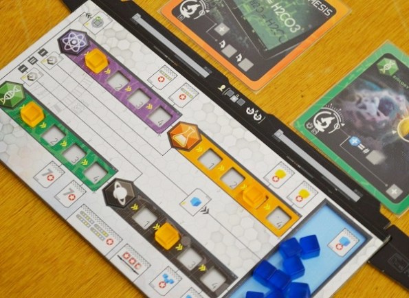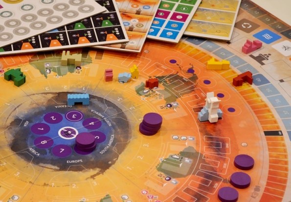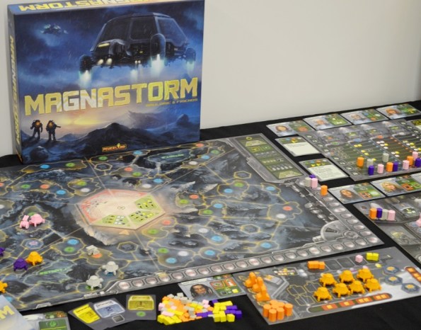 Magnastorm. Осваиваем одноимённую планету, где обнаружены следы давно утраченной цивилизации и залежи природных ресурсов. Из интересного – принцип выбора действий. Всё происходит на отдельном планшете, разделённом на колонки по числу персонажей-командиров. В свой ход у игрока две опции. Первая: переместить фишку с верхнего яруса на нижний и либо получить указанные ресурсы, либо передвинуть свои разведывательные транспортные средства. Вторая: воспользоваться свойством командира, заплатив за каждую фишку в верхнем ярусе. Получается, что при выполнении первой опции вторая дешевеет.