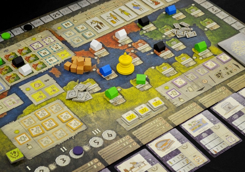 В остальном всё более или менее стандартно: множество способов, как развиваться и заработать победные очки. Всё это завуалировано под изучение технологий, продвижение по ступенькам трёх храмов, строительство жилищ для местного населения и возведение величественной Пирамиды Солнца.