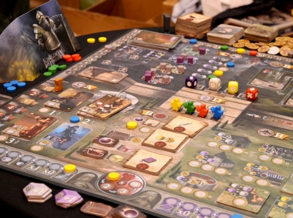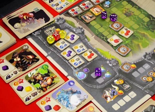 Kingdom Defenders. По описанию и внешнему виду напоминает Champions of Midgard: рабочие, ресурсы, миссии, сражения с монстрами. Отзывы супер-положительные, но их до сих пор ничтожно мало. Из любопытного: игроки бьются с ордами врагов сообща; механика ранений, уменьшающая число дисков действий; разделение поля на королевство и город – если начал выставлять диски в одну часть, то в другую уже не можешь. Занёс в вишлист, а там посмотрим.