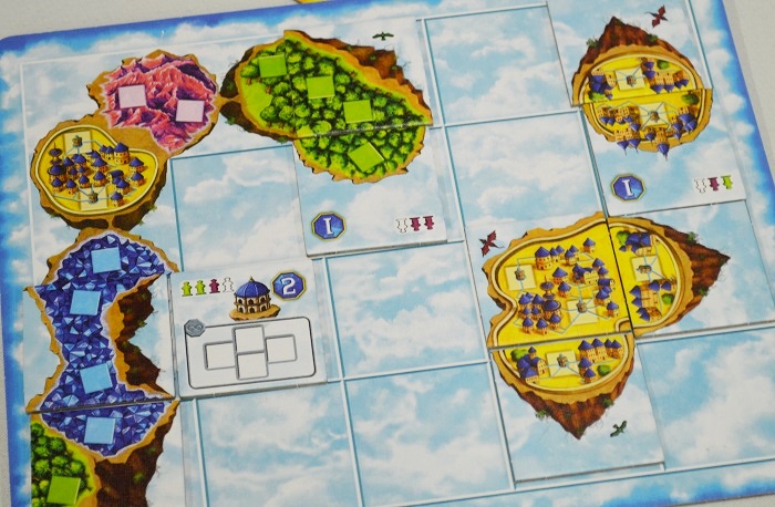 Первая про выкладывание тайлов и выполнение заданий на карточках построек.