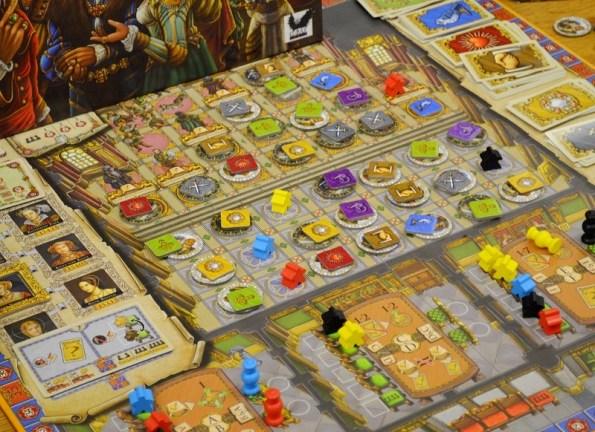 На столе игра смотрится громоздко и невыразительно. Попробовал бы, но купить как-то не возникло желание, тем более, читал жалобы на чрезмерную сухость и отсутствие взаимодействия. Хватит пока Лоренцо с ещё неопробованным допом.