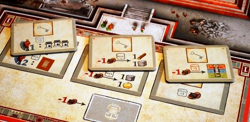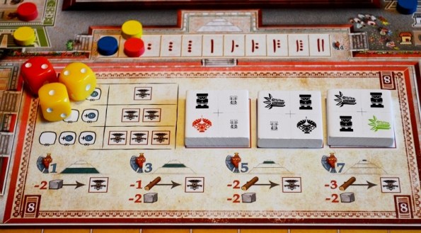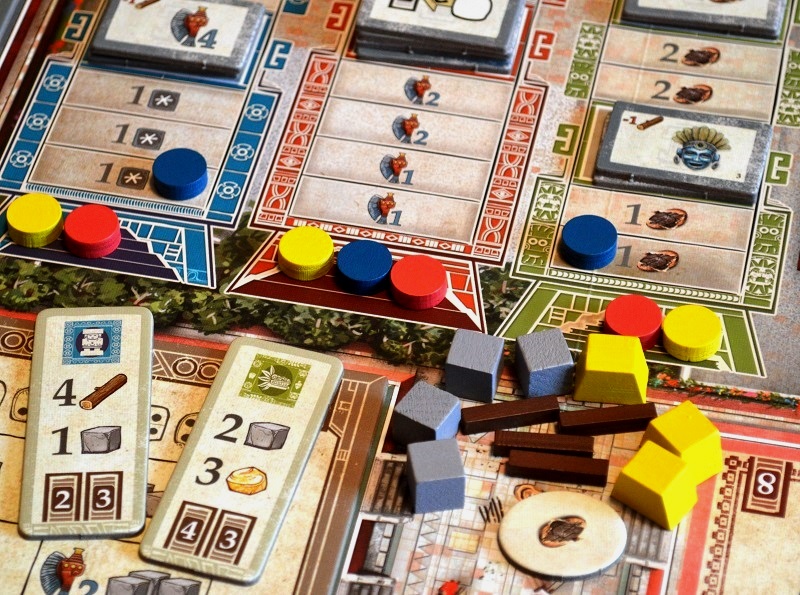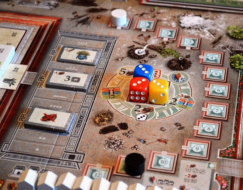 Идеи со старением кубов и зависимостью силы эффекта от числа рабочих не новы. Первое встречалось, например, в Praetor, а второе – в Yokohama или даже в Voyages of Marco Polo (при походе на рынок). Треки храмов так вообще позаимствованы из хита автора Tzolk’in. Но подобное сочетание всё равно воспринимается довольно свежо и самобытно. А главное, ощущения от процесса для меня не стали какой-то беззубой вторичностью, игра действительно цепляет и не утомляет чрезмерной переусложнённостью.