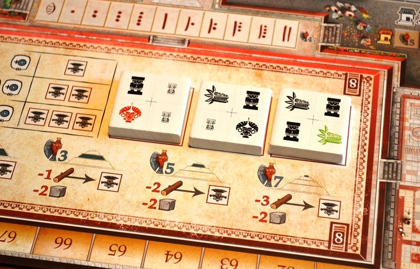 Особенно же тешат душу моменты, когда удаётся запустить цепочку мелких позитивных для тебя событий. К примеру, удачно пристроить к пирамиде тайлик декора, который позволит продвинуться аж по двум трекам храмов. Новые ступеньки треков тоже принесут плюшки, а использование локации декорирования ещё и активирует технологию на дополнительные очки. Поиск и реализация вот таких вот многоходовочек доставляет истинное удовольствие и является первостепенной задачей на партию. В принципе, успех заключается в синергии между выбранными источниками победных очков и бонусов. Одно должно подпитывать другое.