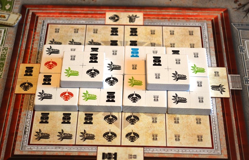Извиняюсь за сие лирическое отступление, но искренне надеюсь, что оно хоть немного позволит вам проникнуться темой игры, ибо сам процесс не блещет погружением в атмосферу древнего Теотиукана. Коробку словно надолго оставили под палящим мексиканским солнцем, из-за чего игровой процесс высох, а все компоненты выцвели. Взгляните только на поле и тайлы. Хотя стоит отдать авторам должное за то, что они обыграли и Дорогу мёртвых, и строительство пирамиды Солнца, которая гордо занимает центральное место как на игровом поле, так и в качестве источника победных очков.