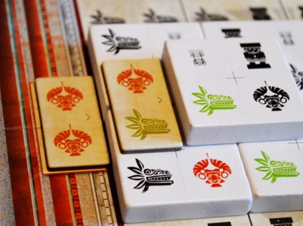 Арсенал игрока тут минимален: 4 шестигранника рабочих, один из которых кладётся в зону вознесения рядом с Дорогой мёртвых; и набор дисков-маркеров, которые занимают свои позиции на треках храмов, победных очков и дороги. Шесть дисков остаются, ими по ходу партии помечаются приобретённые технологии.