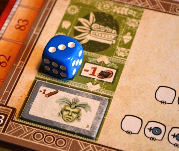Кубиком, выставленным в зоне поклонения, нельзя пользоваться, он считается залоченным. Отлочить все такие кубы можно во время своего хода за 3 какао. Ежели случилось так, что все кубики игрока недоступны, а какао нету, то придётся тратить весь ход, чтобы вернуть их бесплатно. Ваш кубик, к слову, может высвободить и соперник, выбив своим за 1 какао.