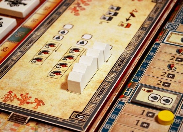 Стоит добавить, что возведение пирамиды и её декорирование продвигает игрока по треку строительства, что тоже даёт очки в конце каждой эпохи.