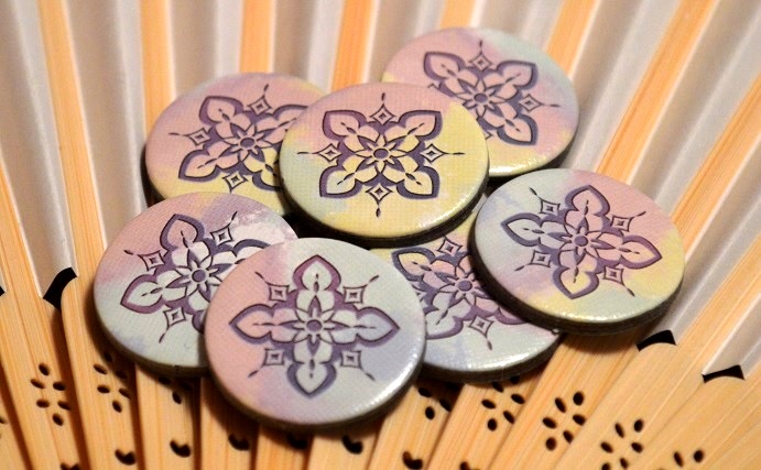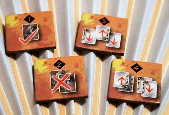 Правила тут простейшие и умещаются на одном листке. Между игроками выкладываются 7 карт гейш, после чего в центр каждой помещается жетон одобрения. Далее игроки берут себе по идентичному набору из 4 жетонов действий.
