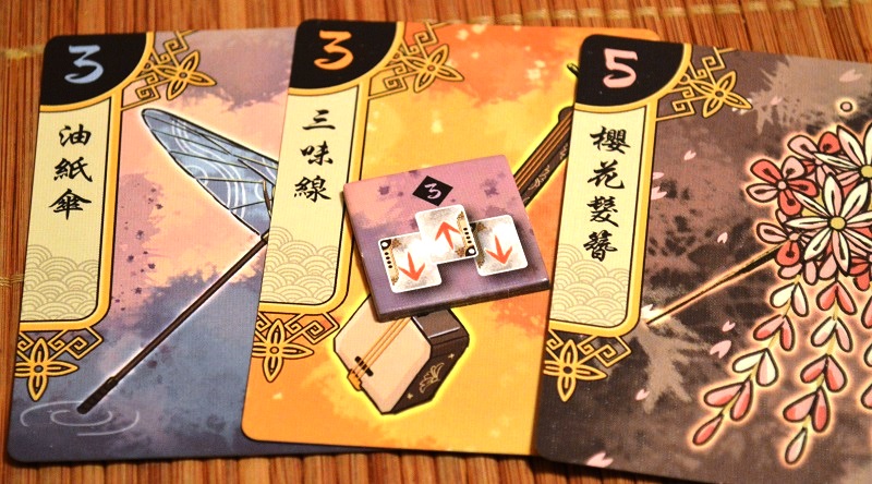 Сыграв тройку, игрок выкладывает перед собой три карты, из которых одну сначала забирает себе соперник. Все карты потом помещаются к соответствующим гейшам.