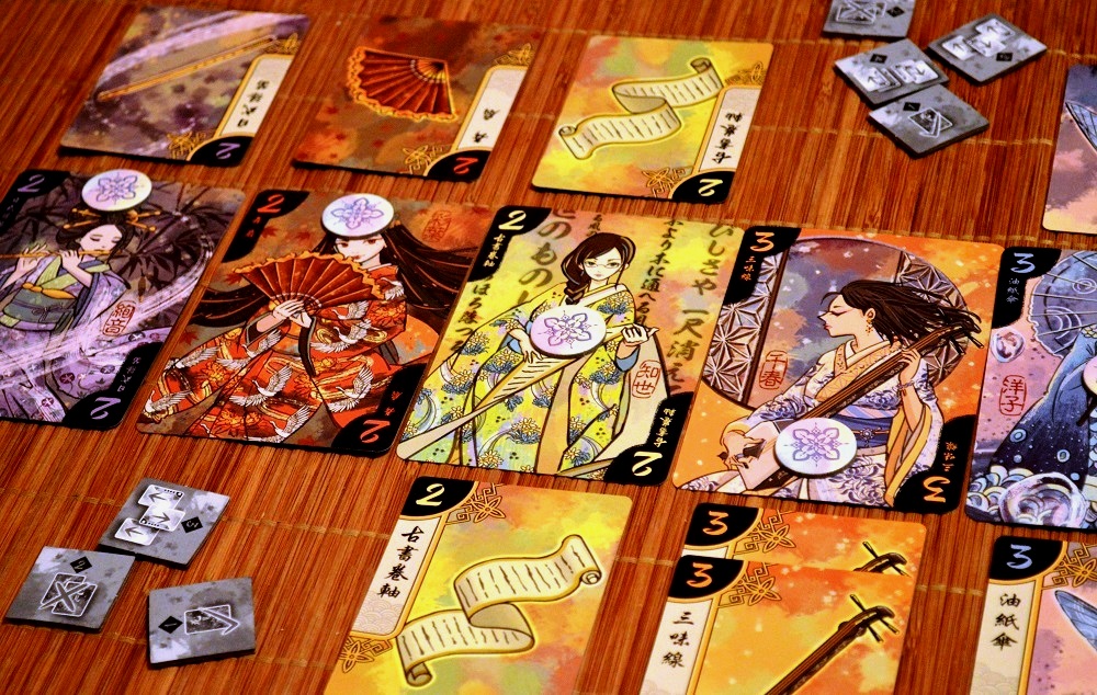 Задача на раунд очевидна – оценивать руку, не давать оппоненту сразу слишком много информации и выжидать моменты, когда можно обезопасить своё право на гейшу. Примитивный пример с двойками: если пришли две одинаковые карты, то одну можно спрятать до подсчёта, а вторую сбросить. Разумеется, чем требовательнее гейша, тем сложней всё предугадать, но отыграв несколько партий, понимаешь, что даже те действия, которые вроде бы тебя сковывают и помогают сопернику, могут стать эффективным оружием, способным этого соперника перехитрить и заставить сделать выбор в вашу пользу.