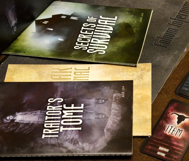 Сразу отмечу очень хорошо структурированные книжки предателя и выживших. Тут и внятное описание подготовки, и кодировка всей информации разными цветами, по которым сразу видно, что зачитывать всем, а что держать в тайне. Вдобавок, сразу перечислены необходимые жетоны и прочие компоненты.