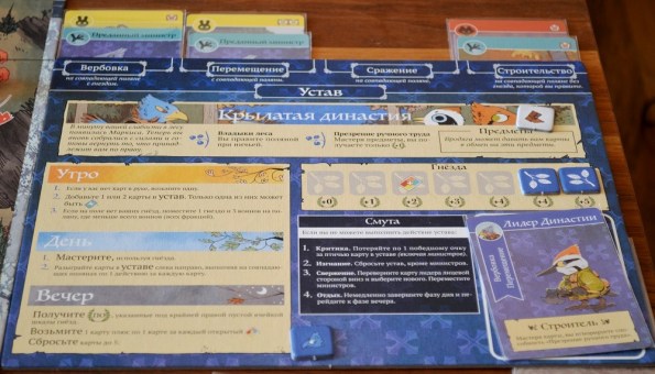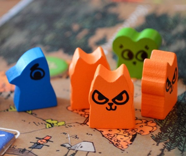 Коты давят числом и развиваются через постройки, птицы вьют гнёзда и чётко следуют распланированным согласно “карточному уставу” действиям, лесной союз ведёт партизанскую войну через бунты и восстания. За енота ещё не играли, но сама суть, что у тебя одна единственная фишка – это же жутко любопытно и оригинально.