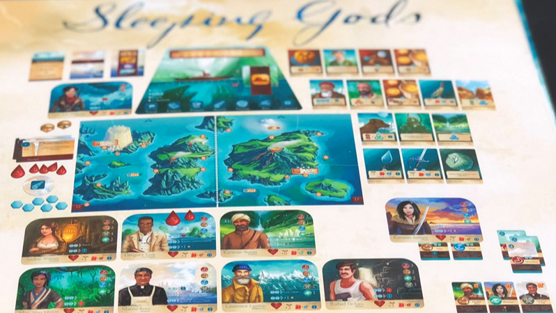 Sleeping Gods – это кооперативная игра на выживание и исследование, которая проходится в режиме кампании. Поле выполнено в виде атласа, где каждая страница представляет собой кусок таинственного неизведанного мира. Помимо атласа в набор входит книга историй, в которой описываются различные события при исследовании локаций. А вот в это сыграл бы. Автор здорово набил руку на Above and Below и Near and Far, полагаю, что Боги выйдут не хуже.