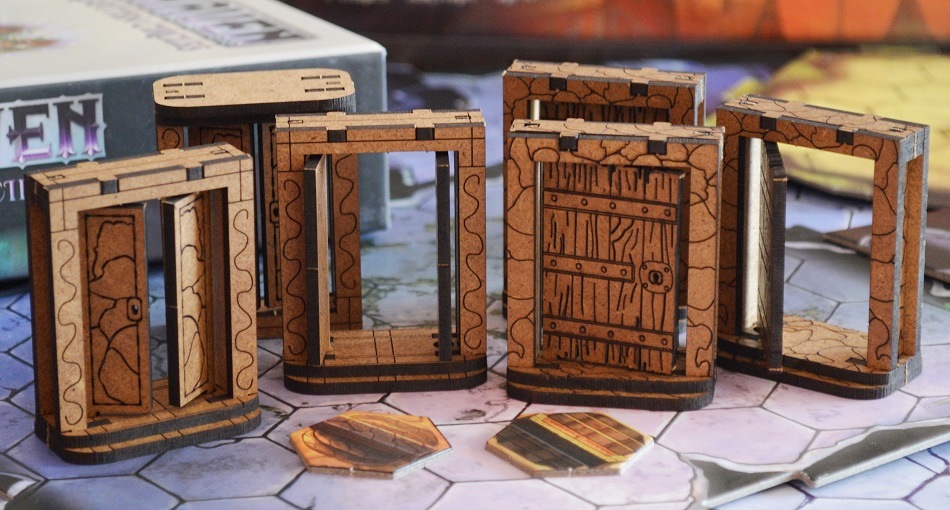 Моё любимое – это, конечно же, ранее упомянутые капканы и нажимные пластины, а также алтари, фонтан, открывающиеся двери и сундуки. Хотя, в принципе, во время партии абсолютно всё выглядит достаточно антуражно и уместно, ибо выполнено из одного материала и в одном, скажем так, стиле.