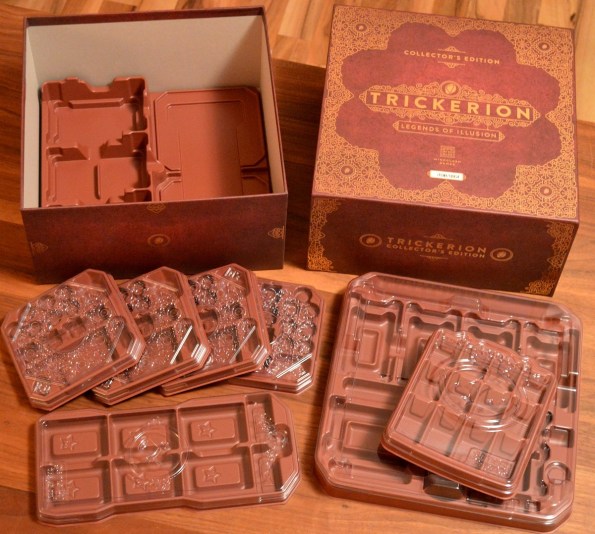 Пришла посылочка с Кикстартера с обновками для Trickerion: Legends of Illusion. Друзьям игра понравилась, поэтому решил прикупить дополнение. Но когда увидел, как издатель прикольно оформил коллекционную коробку, дозаказал и её.