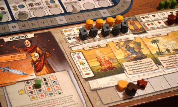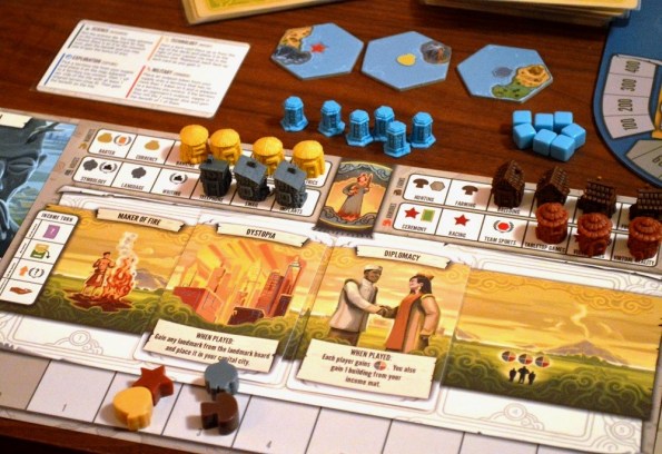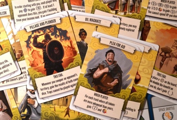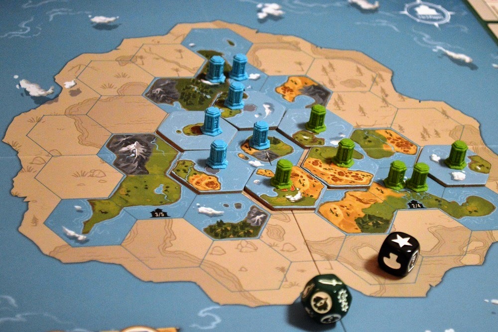 Немного странно и опять же слишком поверхностно выглядят потуги выдать обычное евро за цивилизацию: технологии, где от технологий лишь картинки и громкие названия; возможность отобрать контроль гекса, которая контрится скучной take that картой ловушки; набеги на новые территории с наградой в виде броска двух кубов с разбросом плюшек, который ничем не модифицируется.