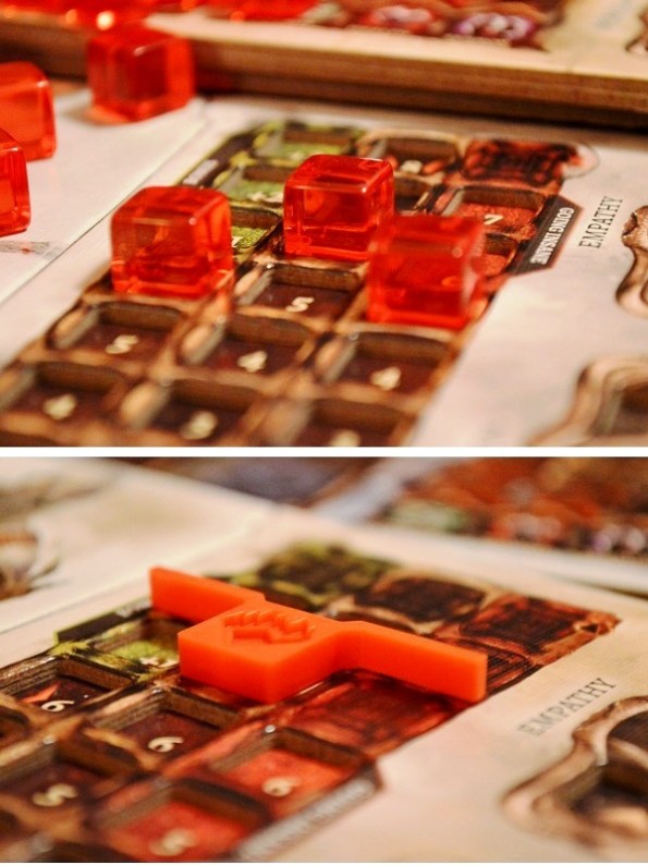 Напомню, что на планшете нужно постоянно манипулировать кубиками-маркерами, и двухслойность тут пригодится. Для отображения предела характеристик дополнительно идут ограничители.