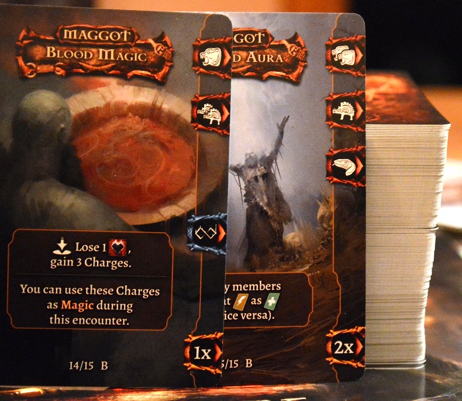 Помимо базовой коробки с первой волной пришло косметическое дополнение Monsters of Avalon. Косметическое оно потому, что в игру ничего не добавляет, а лишь визуализирует монстров, которые встречаются по ходу прохождения. Стандартно они представлены в виде обычных карт с характеристиками.