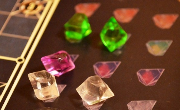 Теперь о том, почему же игра для не стала для меня хитом. В ней нет потенциала для стратегий и ощутимого разнообразия. Набор уникальных бонусов на картах мастеров скромен, а карточки плакатов отличаются лишь цветом кристаллов и формой фигур. Да и цели тоже не блещут разнообразием и частенько повторяются.