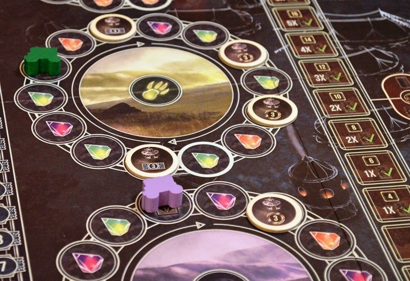Тут также есть достаточно способов, чтобы в случае плохого распределения граней или увода нужных вам кубиков соперниками с честью выйти из ситуации за счёт бонусов с карт, кристаллов или помощников. Другими словами, рандом не напрягает. Как и плата за кубы в конце раунда. Если играть внимательно, то денежки легко зарабатываются в довесок к победным очкам.