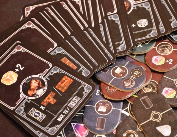 И напоследок про оформление. Прогресс по сравнению с Santa Maria очевиден, но всё равно бюджетность чувствуется. Во-первых, на всю игру со 100+ картами всего 6 жалких уникальных артов. Причём, эти же арты красуются на крышке и внутри коробки. Во-вторых, мрачная цветовая гамма уже после пяти минут давит на мозг и мешает восприятию и дифференциации символов.