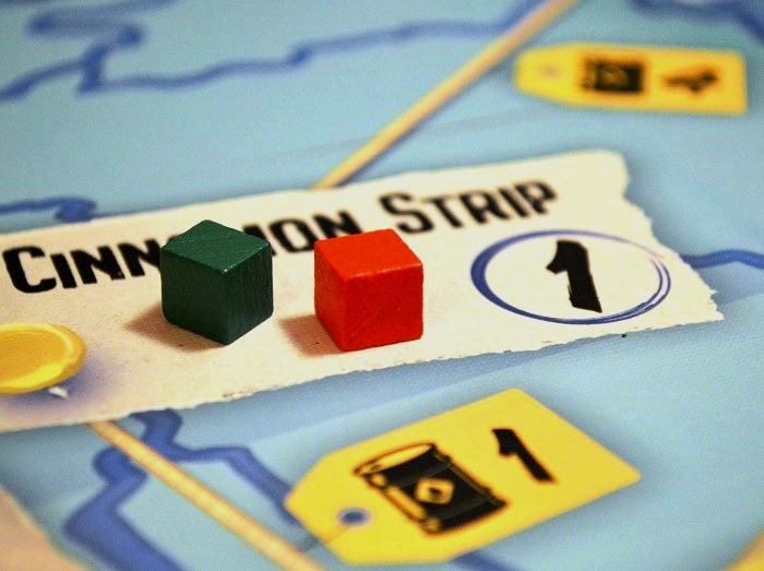 Если цвет пассажира-шестигранника совпадает с цветом кубика в целевой локации, то игроку полагается бонус в виде улучшения одного из параметров на планшете. Кубик отправляется туда же на уменьшенную версию карты. Если совпадения нет, то из запаса берётся серый.