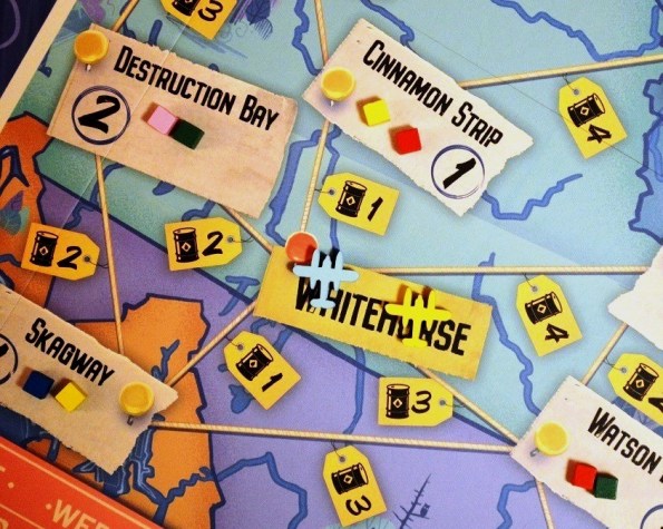 В начале партии всем выдаётся по карточке и фишке самолёта, а также планшет с кучей различных приборов и переключателей. В центр стола помещается игровое поле с картой Юкона, куда в каждую локацию случайным образом выкладываются цветные кубики, представляющие собой некие интересные для посещения места.